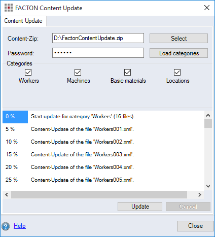 - In the ribbon, click on Extras ► Benchmark Data. The “FACTON Content Update” opens.