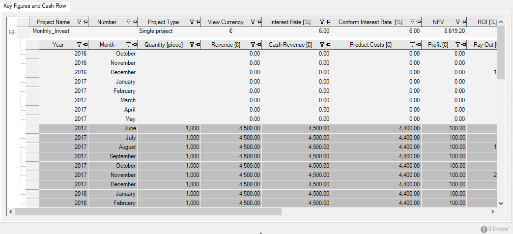 | Revenue [EUR] | Shows the revenue over project lifetime. |