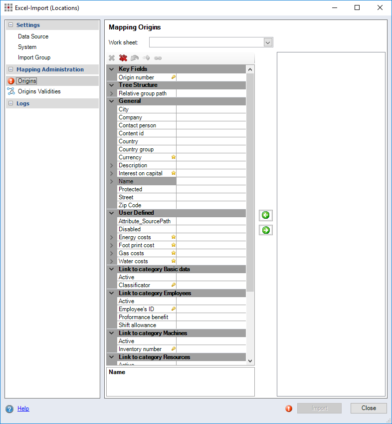 Figure: Excel Import (<origin category>) dialog, Mapping <origin category>