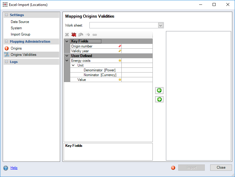 Figure: Excel Import (<origin category>) dialog, Mapping <origin category> Validities
