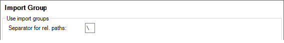 This folder structure can also be replicated for every data record to be imported. The dialog elements "Import group" and "Separator for rel. paths" along with the assignment of relative paths are provided for this purpose.