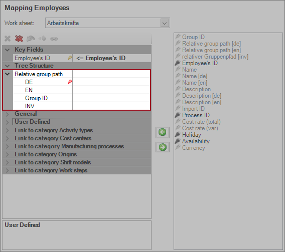 The following chapters show various possible combinations of import groups and relative paths using an example for Excel master data import for workers.