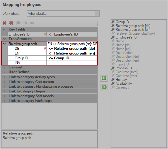 symbol (red key) shows which language is used in the "Relative group path" FACTON field to search for existing groups.