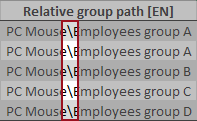 Figure: Excel table detail, Separator for relative group paths