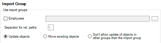 - Choose how you wish to handle objects that need to be imported and/or updated by selecting one of the three options of the "Use import groups" group.