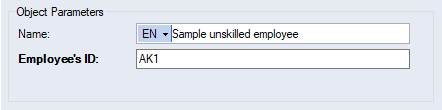 In this group, you can administer standard parameters of the master data, e. g. multilingual names and the ID number, to identify the data. Each master data category has its own obligatory identification characteristics, e.g. "Employee's ID" or "Number".