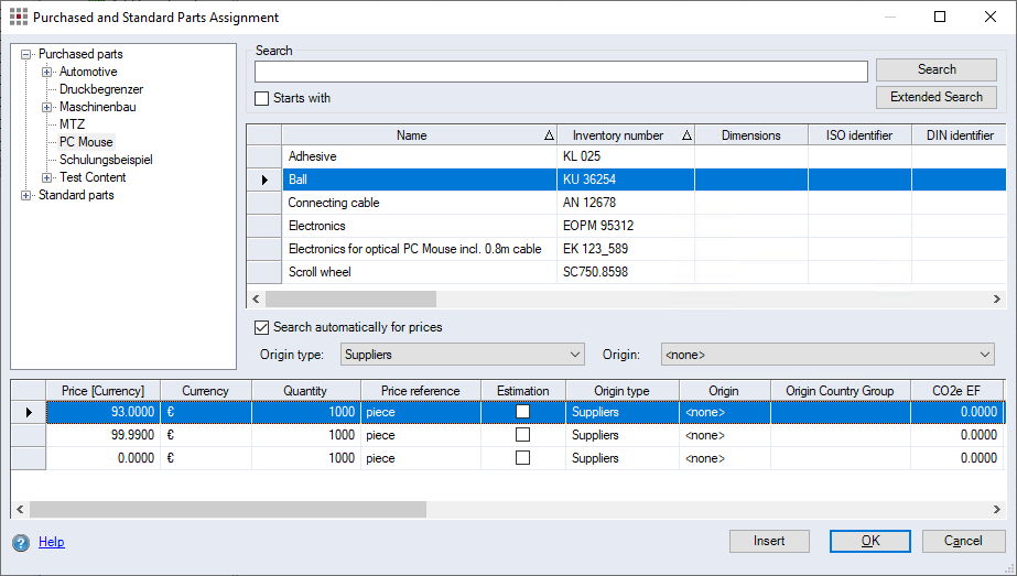 When activating the "Search automatically for prices" checkbox, you can only use the "Origin" combobox to search for prices of a specific origin. The program only displays origins of the respective origin type that have prices attached.