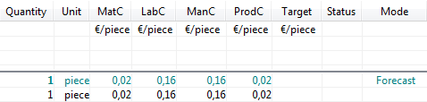 If the Forecast mode is used in the base calculation, the mode is replaced by Estimation in the costing type.