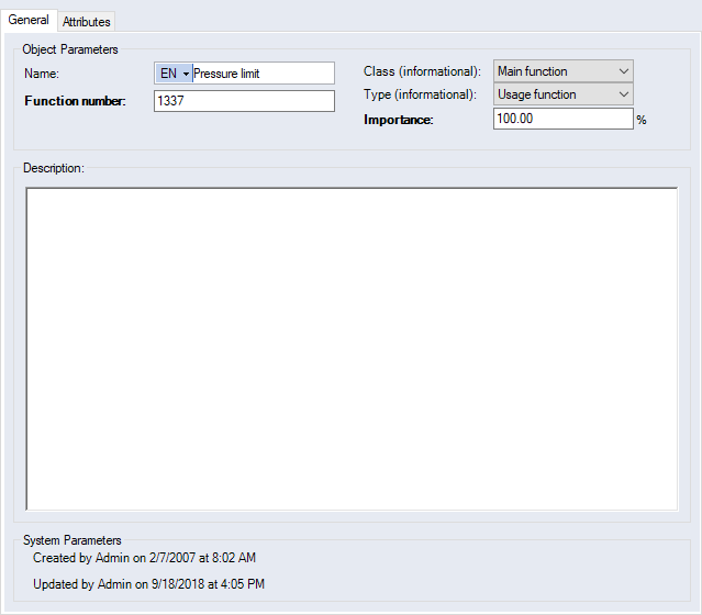 Please note that the percentage value for the "Importance" of a function must always result in 100% of the main and the sub-functions.