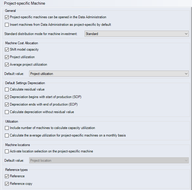HintActivate the checkbox if no machines with assignments to locations, shift models, etc. are used in Data Administration or if all machines are always added as project-specific machines.