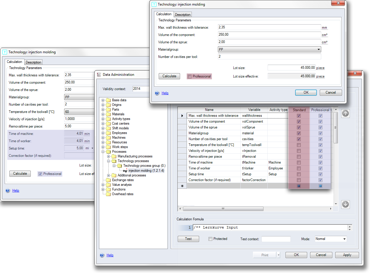 Professional mode enables you to determine the costs of your product more quickly and easily. You can hide additional calculation parameters from users to simplify input and restrict it to a minimum.