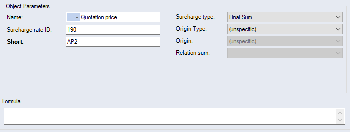 At the component level, the formula can be used to define a different basis for surcharges. This can be achieved by using the "=" character and the desired abbreviation of the surcharge rate.