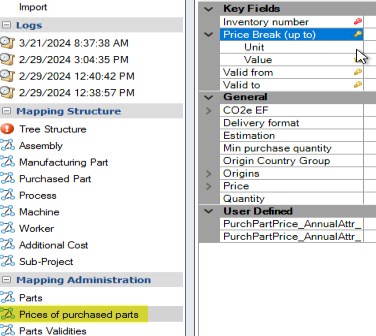 Automatic price determination plays a decisive role in tiered prices. If the "Search automatically for prices" checkbox is not activated when assigning the purchased or standard part, the manually selected price for the part is used regardless of validity periods or price breaks.