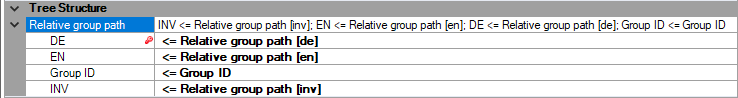 The "Tree Structure" category helps you assign your data records to a grouping. If you use a relative group path for the Excel import, enter the Excel columns you wish to use for the relative path in these fields.