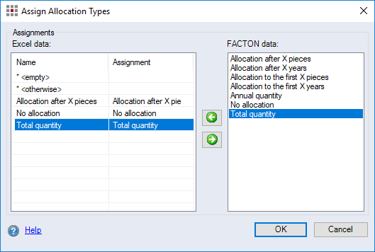 Field names from the Excel column for the allocation types that can be assigned to the FACTON data.