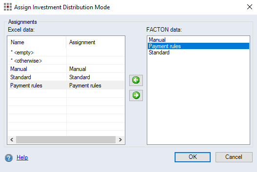 Then, the matching FACTON cost type, allocation type and distribution mode must be assigned to each value that contains this column in the Excel file.