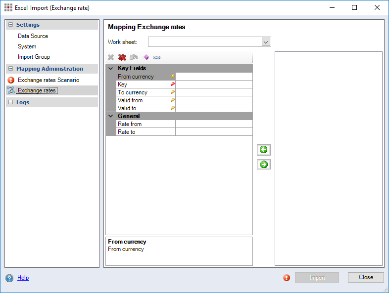 Figure: Excel Import - Exchange Rate dialog, Mapping Exchange Rates