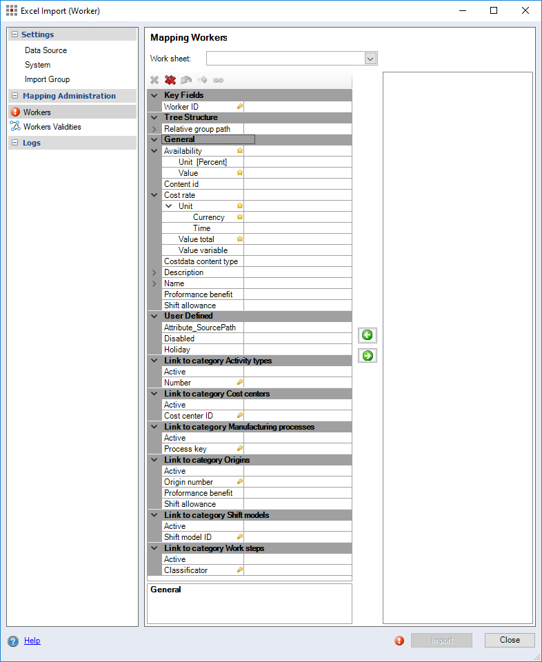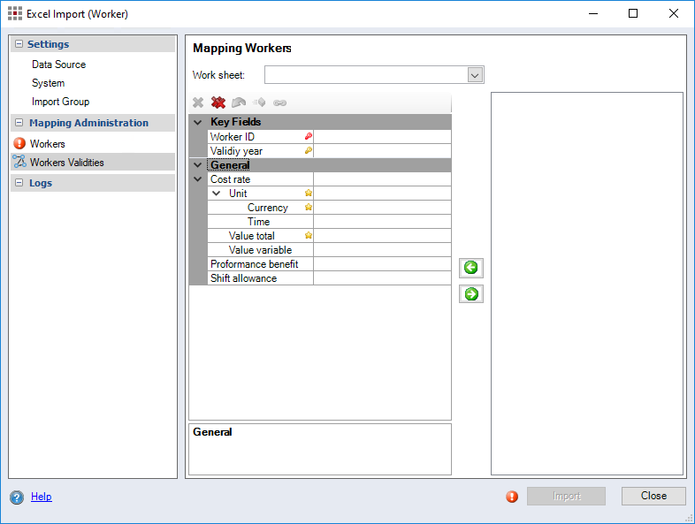 Figure: Excel Import - Worker dialog, Mapping Workers