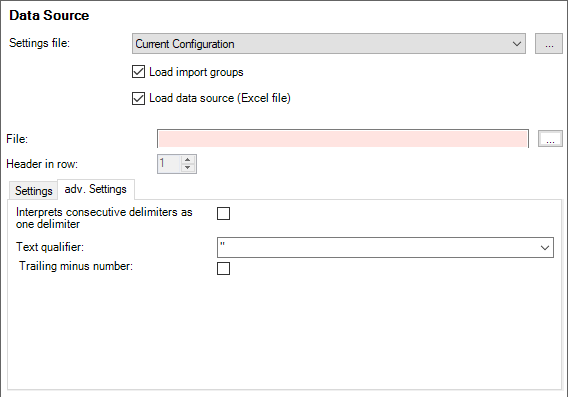 If this box is checked, the Excel import identifies numbers with a trailing minus sign as numbers. If the box is not checked, the Excel import identifies these numbers as text.