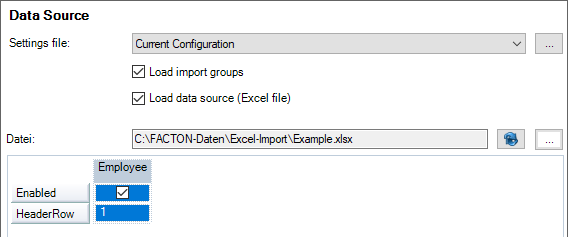 When the checkbox is activated, the data source (Excel file) is also loaded when selecting an opt-file.