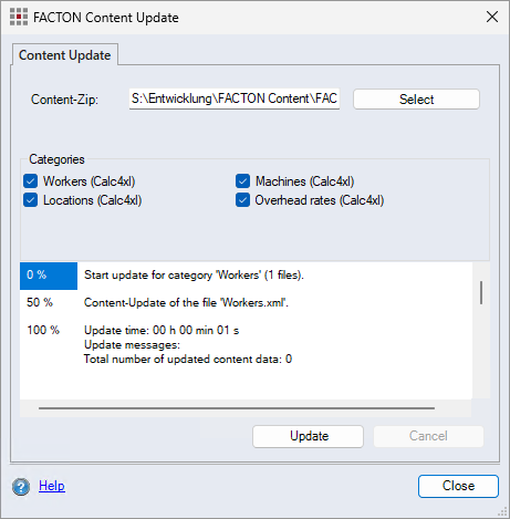 "FACTON Content Update" dialog