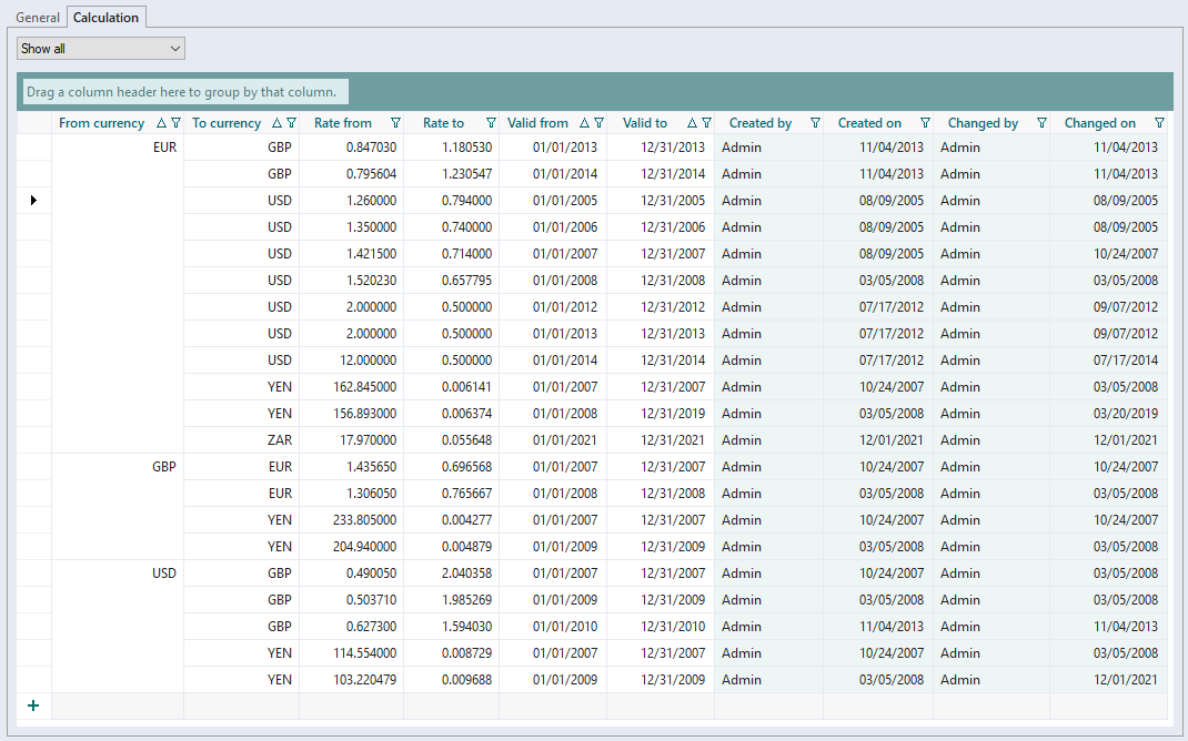 As system administrator, the exchange rate table can be administered in the "Calculation" tab. You can also copy and paste exchange rates from and to Excel.