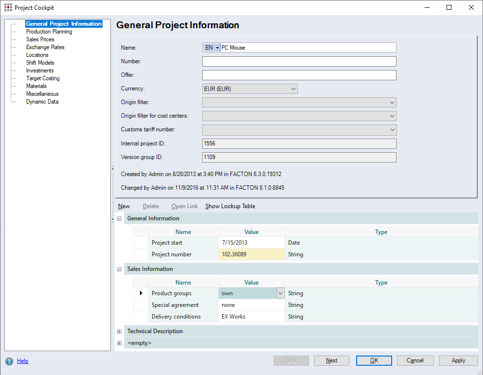 General Project Properties In the Production Planning category