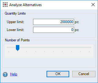 Defines how often an intermediate result between upper and lower limit of the quantities is displayed in the "Alternative Analysis" report.