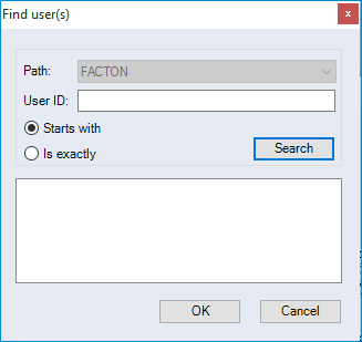 When using FACTON Authentication, users are searched in the User and Group Administration.