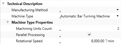 This value is required in order to manage additional machine type properties. It can be managed at the machine (Details view ► Technical Description) or is applied when master data is inserted.
