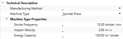 The forming work properties used to calculate the cost model are shown in this group.