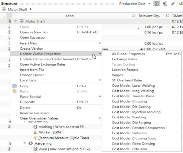 - In the sub-menu, select whether you want to synchronize all global properties or just individual ones.