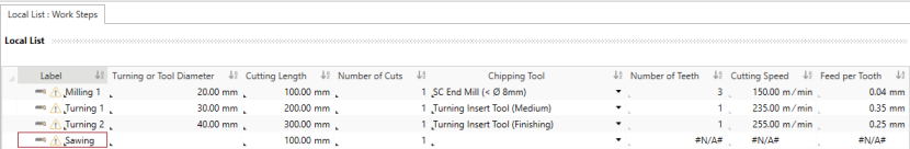 With FACTON, you can define multiple work steps at the Chipping cost model. You can assign the work steps to the machining units via a selection list.