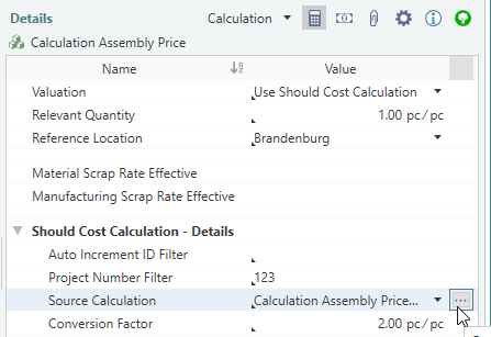 2. In the Details > Calculation > Should Cost Calculation - Details on the button (next to the Value column).