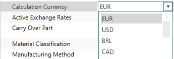 button next to the Calculation Currency entry field. - Select the desired calculation currency.