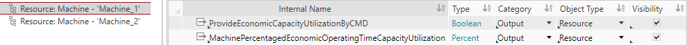With the interface properties ProvideCapacityUtilizationByCMD and ProvideEconomicCapacityUtilizationByCMD you can define a machine rate base in the FACTON CMD in order to use both types of machine depreciation.